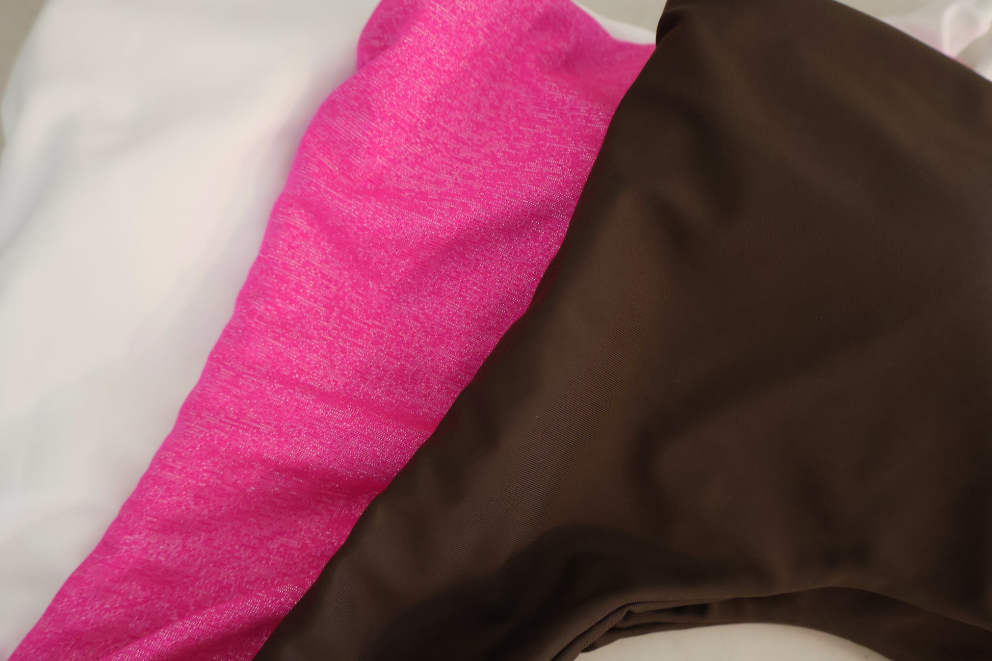 FABRIC DETAILS: IVORY & ESPRESSO: 78% Recycled Nylon, 22% Elastane. BARBIE: Textured shimmer fabric-