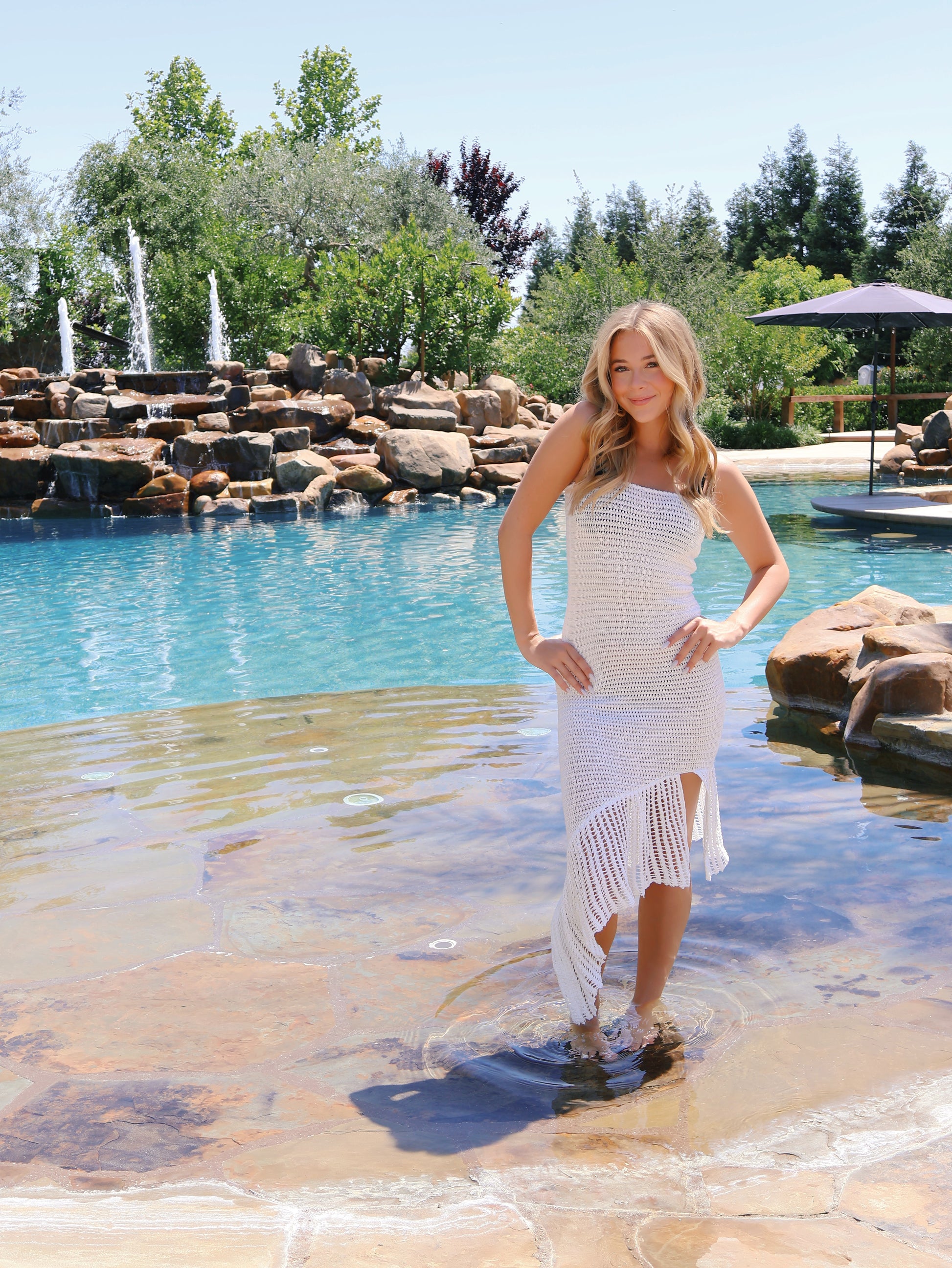 This Mermaid Coverup is a long crochet beach dress that adds a playful, girly touch to your seaside look. Its delicate crochet design offers a breezy, lightweight feel perfect for warm days by the water. Slip it on over your swimsuit for effortless style and a hint of boho flair that’s both comfortable and cute.